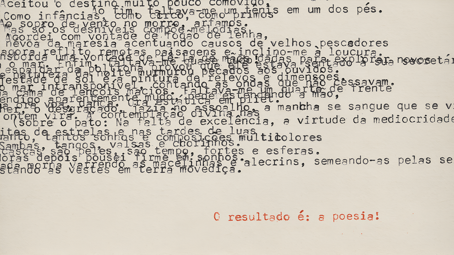 [en] The graphic project originated from the idea of creating something manual, playing with phrases taken from the book itself. The work was edited to commemorate over 30 years of the poet's literary career, featuring poems from various phases of his work. The project was developed using an old typewriter, a scanner, and digital collages. The book was published by Haikai Publishing and printed on Pollen 75 g/m² paper in December 2019.